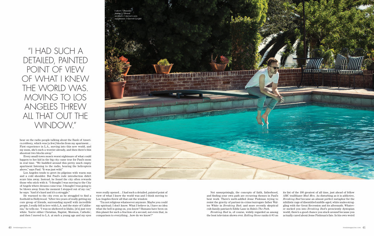 Not unsurprisingly, the concepts of faith, fatherhood, and finding your own path are recurring themes in Paul’ s best work. There’ s meth-addled Jesse Pinkman trying to resist the gravity of partner-in-crime / surrogate father Walter White in Breaking Bad; and more recently skeptical cult-family patriarch Eddie Lane in Hulu’ s The Path.